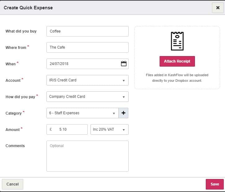 Add everyday businesses expenses quickly and attach your receipts on the go.