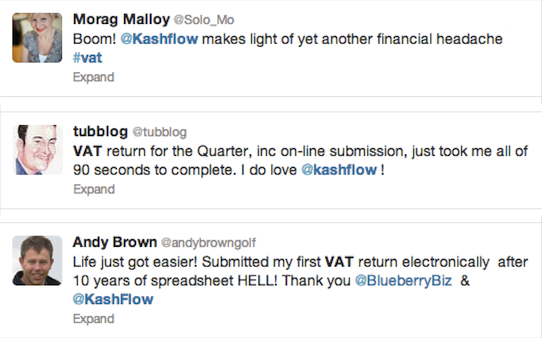 KashFlow is recognised by HMRC for online filing of VAT returns, and you can submit your VAT return from within the software!