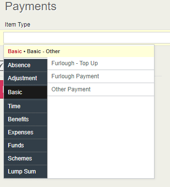We have added a new Furlough – Top Up payslip item which is available in the payslip item selection box under Basic / Basic – Other, above the existing Furlough Payment payslip item.