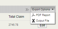 The top right of the table in the bottom section of the claim details page includes the Export Options.